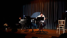 The two play songs ranging from jazz standards to pop, or even classical music. In Summer 2009 in Calvi dell'Umbria he took part in the show La Notte del Labirinto by the ART MONASTERY PROJECT (www.artmonastery.org) as singer, guitarist and tango dancer. The same year he was called by writer/director SERGIO BAZZINI to sing and play guitar in the theatre project IO DISUBBIDISCO, forming the music quartet O IN CONDOTTA with Bazzini on trumpet, Giada Pietrini also on vocals and Andrea Gesano on piano; the show went on stage in Rome in 2009 and 2010, and was followed by the show IL DIAVOLO A QUATTRO in October 2010. Earlier the same year Angelo took part in the 1st Big Band Singer's Competition at the Felt Club Music School in Rome, resulting as the best male contestant, although not reaching the final. A few months later he began rehearsing with TJORCHESTRA, the Big Band of the SPMT.